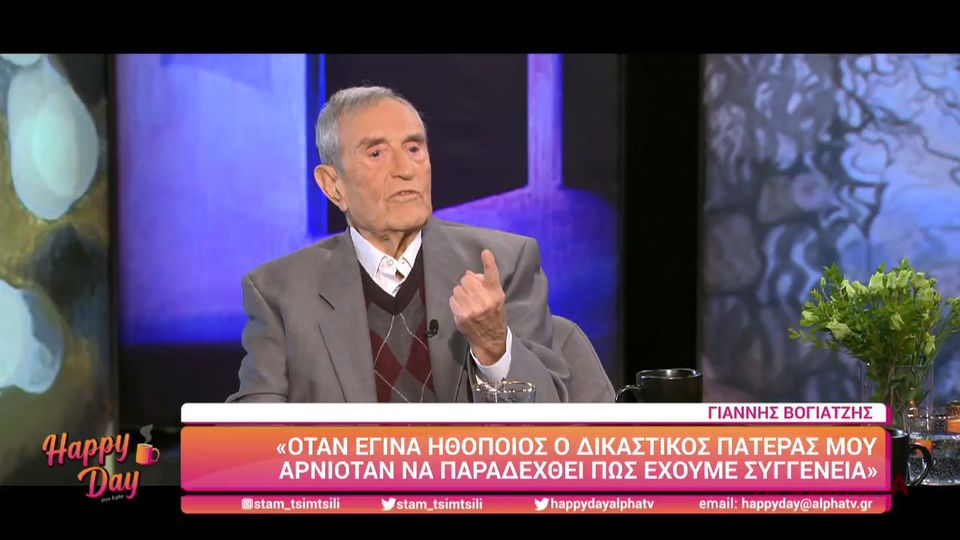 O Γιάννης Βογιατζής μίλησε για την σπουδαία πορεία του στο θέατρο και τον κινηματογράφο. Ο ηθοποιός βρέθηκε στην εκπομπή Προσωπικά και συγκινήθηκε ιδιαίτερα με τα λόγια καλού του συναδέλφου. Ο Γιάννης Βογιατζής έχει γεννηθεί στις 12 Ιουνίου 1927.